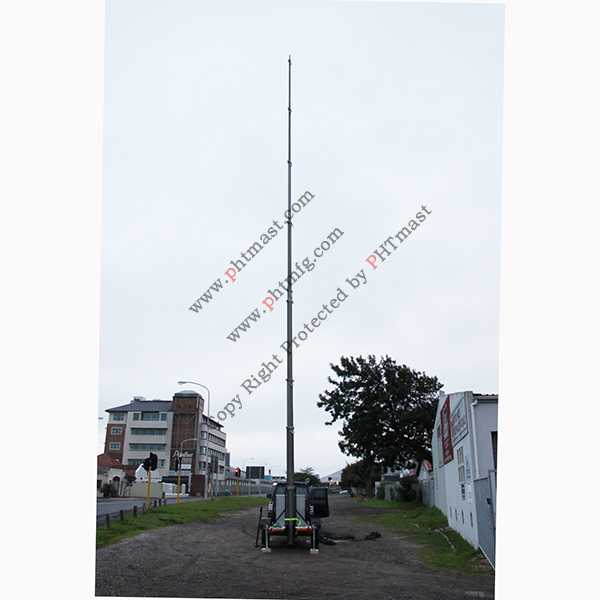 50kg payloads, 3.93m retracted height, 9 sections, 4x4 guying ropes, lockable collar, long time application