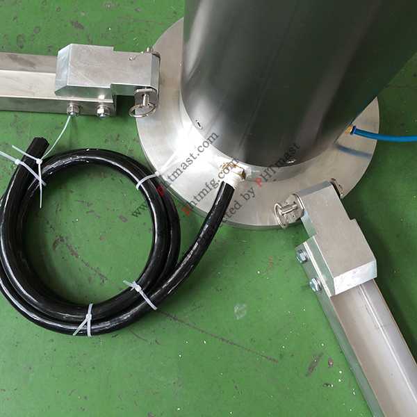 Item #: PHT-70A07150 15m mobile high lighting mast tower 250kg payloads/3.3m retracted height/12x2.5mm cables mounted inside aluminum alloy 6063T5 materials, mast weight 350kg approx. work for mobile hight lighting tower 4x1000W LED lamps mounting