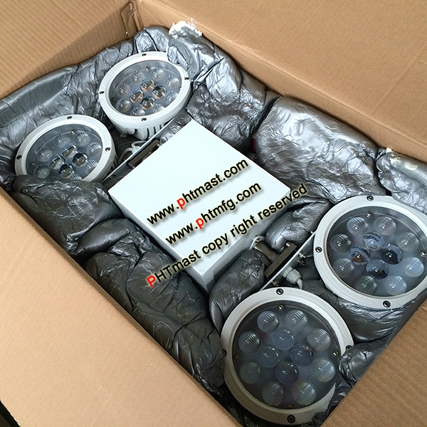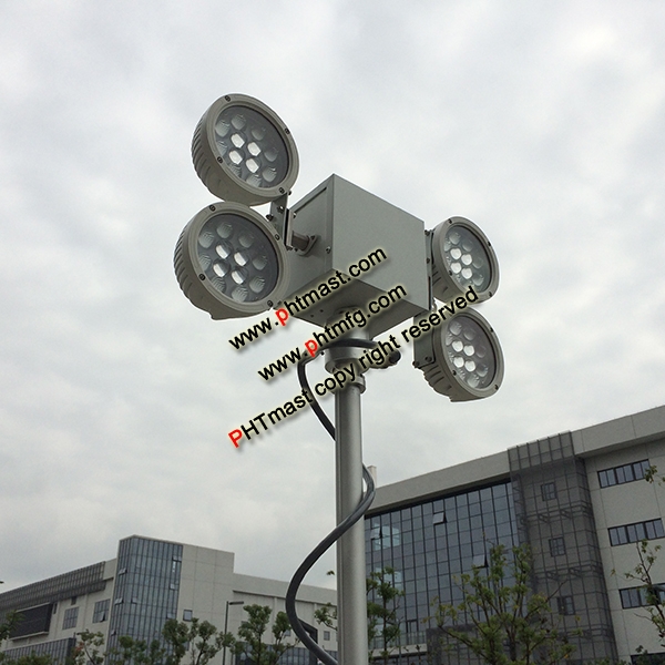 Item #: PHT-RLM-LED240-1500 Roof Mounted LED Move Light Tower 1.5m pneumatic telescopic mast,4x60W LED lamps, DC12V Wireless and wire remote control, 360 degree rotation vertical and horizontal (1.5m/2.5m/3.5m available)